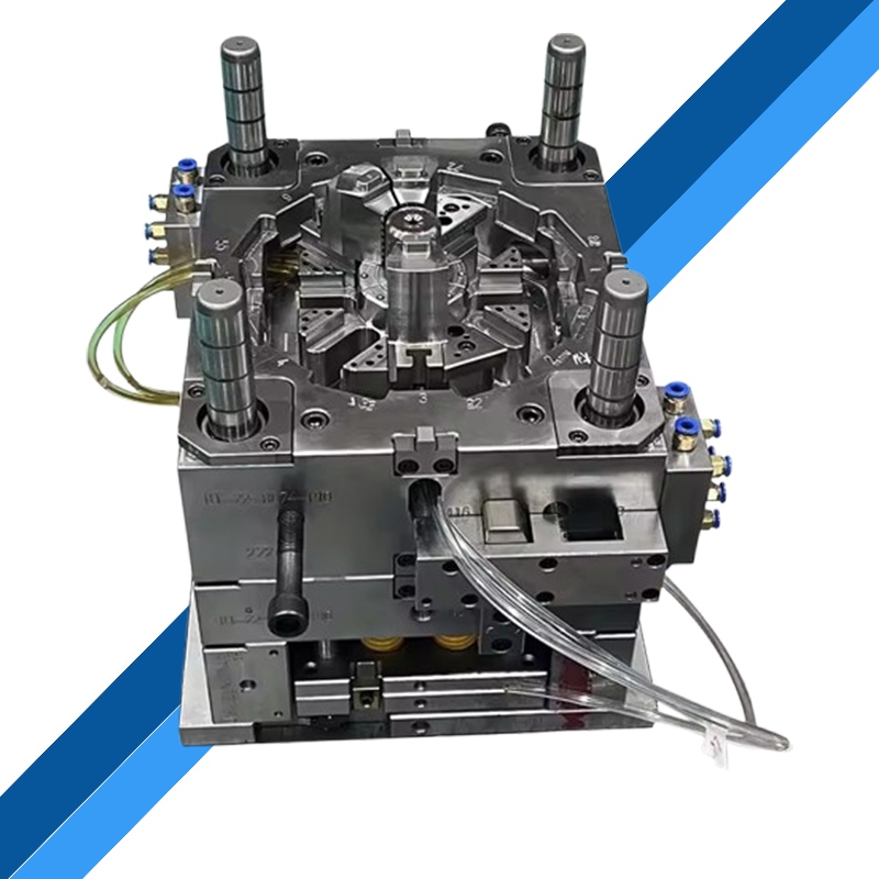 A többüregű öntőforma két vagy több formaüreget tartalmaz, és egy fröccsöntési eljárásban egyszerre több műanyag termék is előállítható, ami jelentősen javíthatja a termelés hatékonyságát és csökkentheti az egységnyi termékre jutó gyártási költséget. Széles körben használják tömegesen előállított kisméretű műanyag termékekben, például műanyag palackkupakokban, gombokban és elektronikus alkatrészek burkolatában. A többüreges forma tervezésekor biztosítani kell az egyes üregek egyenletes adagolását és egyenletes hűtését, hogy biztosítsuk az összes termék méretének és teljesítményének egységességét. Általában egy kiegyensúlyozott kapurendszert alkalmaznak, hogy az olvadt műanyag egyszerre és egyenletesen töltse ki az egyes üregeket.